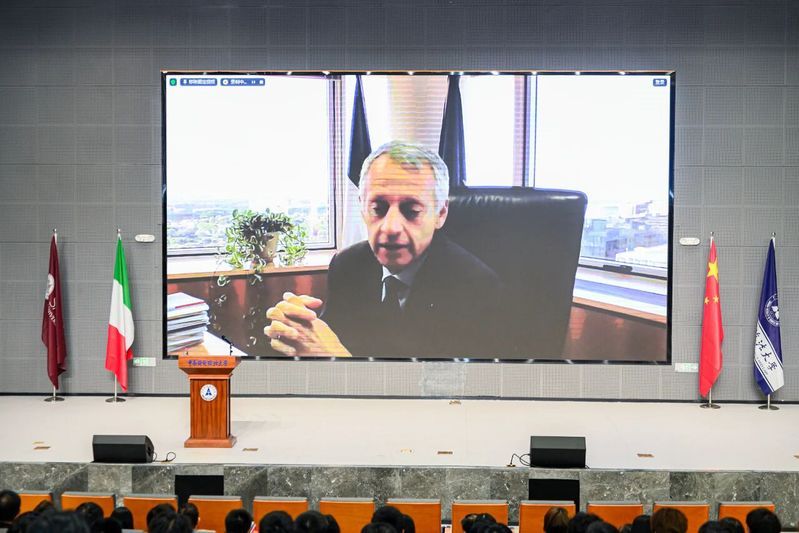 “今年共有203位新生,这是我们以前从未达到的数字,这显然也表明我们的工作做得很好。取得这一重要成果的过程是漫长的,但却令人兴奋。”迪利贝托在致辞中回顾了中意两校合作近十年来的非凡成果,“十年前我们在罗马成立了中意法学研究中心。意大利总统塞尔焦·马塔雷拉教授见证了中心的成立,总统本人也毕业于罗马一大法学院。我们在罗马开设了中国法图书馆,这是中国海外第一家大型中国法学图书馆。我们培养了许多优秀的中南大青年学子在罗马一大获得了法学博士学位。我们的工作受到了两国政府的高度赞赏,因为它不仅为培养法律人才作出了贡献,也为两国人民之间的友谊与合作作出了贡献。我们已在两国和两国人民之间架起了桥梁。”