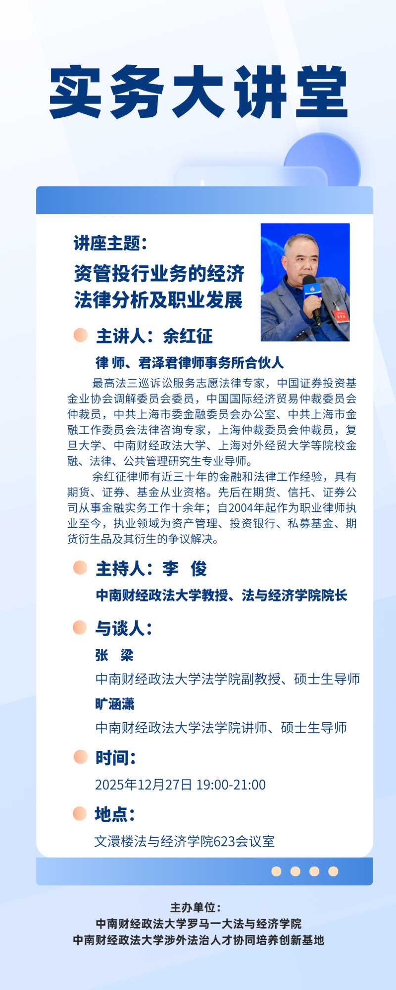 实务大讲堂第十三期:资管投行业务的经济法律分析及职业发展